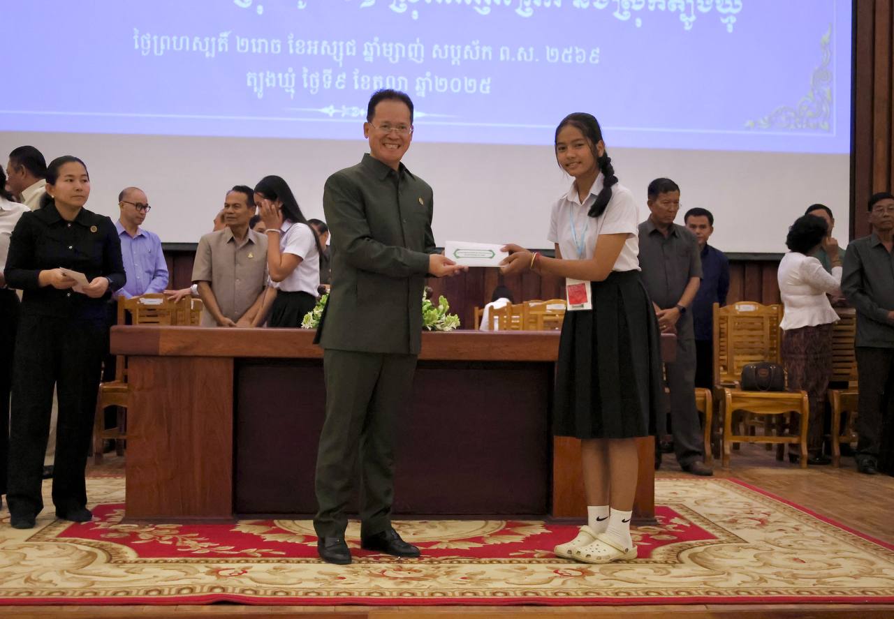 ឯកឧត្តម អ៊ាង សុផល្លែត រដ្ឋមន្រ្តីក្រសួងបរិស្ថាន និងជាប្រធានក្រុមការងាររាជរដ្ឋាភិបាលចុះមូលដ្ឋានខេត្តត្បូងឃ្មុំ ក្នុងឱកាសជួបសំណេះសំណាលជាមួយសិស្សជ័យលាភី ប្រឡងសញ្ញាបត្រមធ្យមសិក្សាទុតិយភូមិ ឆ្នាំ២០២៥ មកពីស្រុកអូររាំងឪ ត្បូងឃ្មុំ និងពញាក្រែក ខេត្តត្បូងឃ្មុំ នាព្រឹកថ្ងៃទី៩ ខែតុលា ឆ្នាំ២០២៥ បានថ្លែងអំណរគុណនិងជំរុញឱ្យមានការចូលរួម កាន់តែច្រើនថែមទៀត បន្តសម្អាតតាមលំនៅឋានរៀងៗខ្លួន ដើម្បីជំរុញឱ្យកម្ពុជា ដែលជាផ្ទះរបស់យើងស្អាត ប្រជាពលរដ្ឋមានសុខភាពល្អ មានបរិស្ថានស្អាត និងការស់នៅប្រកបដោយចីរភាព។