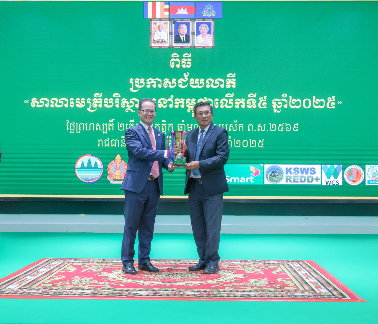 ថ្ងៃ សុក្រ, 24 តុលា, 2025នៅរសៀលថ្ងៃទី ទី២៣ ខែតុលា ឆ្នាំ២០២៥៖ ក្រសួងបរិស្ថានបានរៀបចំពិធីប្រកាសជ័យលាភី «សាលាមេត្រីបរិស្ថានលើកទី៥ ឆ្នាំ២០២៥» នៅទីស្តីការក្រសួង ក្រោមអធិបតីភាពដ៏ខ្ពង់ខ្ពស់របស់ ឯកឧត្តមបណ្ឌិត អ៊ាង សុផល្លែត រដ្ឋមន្ត្រីក្រសួងបរិស្ថាន។ ពិធីនេះត្រូវបានរៀបចំឡើងដើម្បីលើកទឹកចិត្ត និងការទទួលស្គាល់កិច្ចខិតខំប្រឹងប្រែងរបស់សាលារៀនក្នុងការអនុវត្តគោលការណ៍ណែនាំស្តីពីសាលាមេត្រីបរិស្ថាននៅកម្ពុជា។