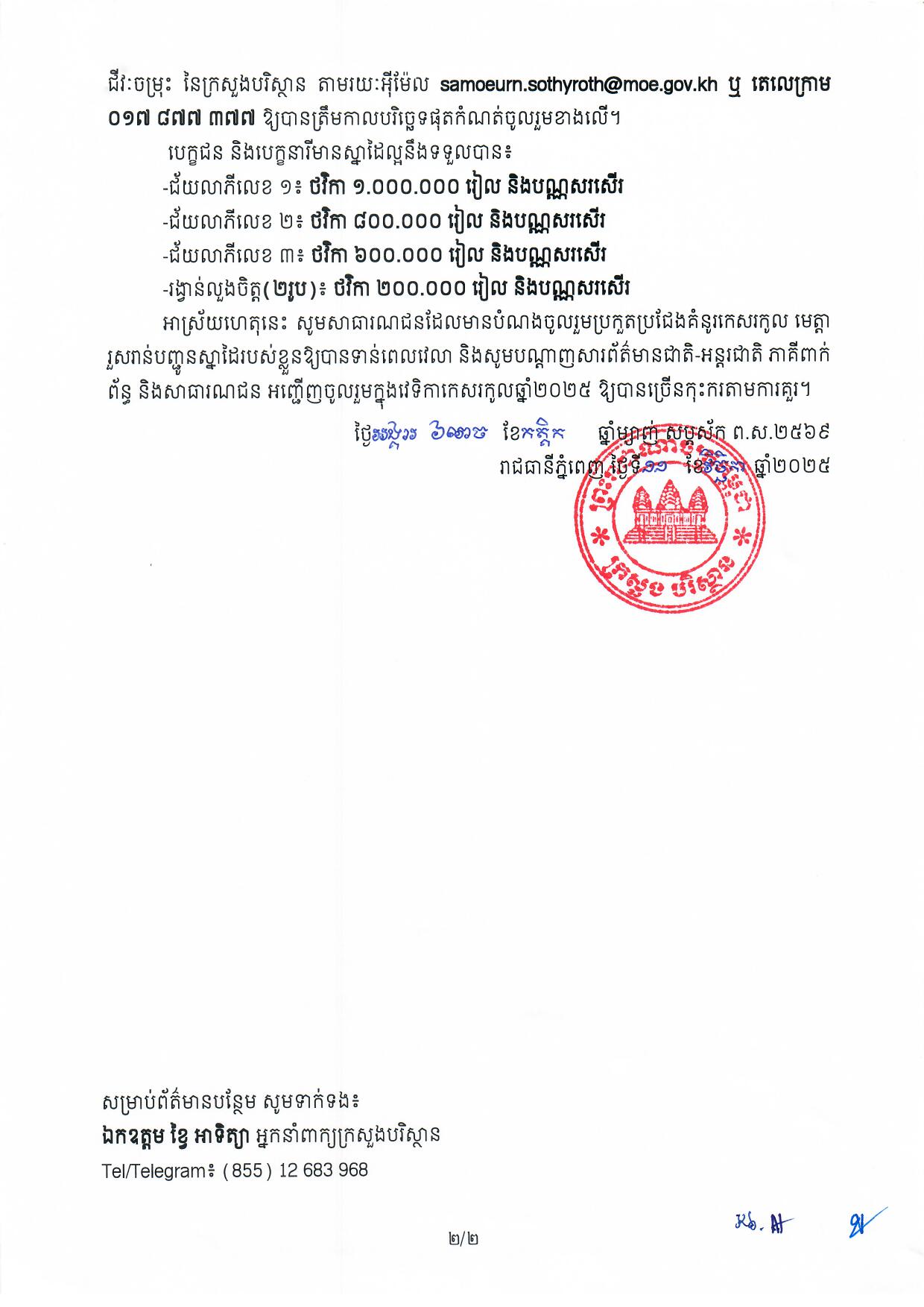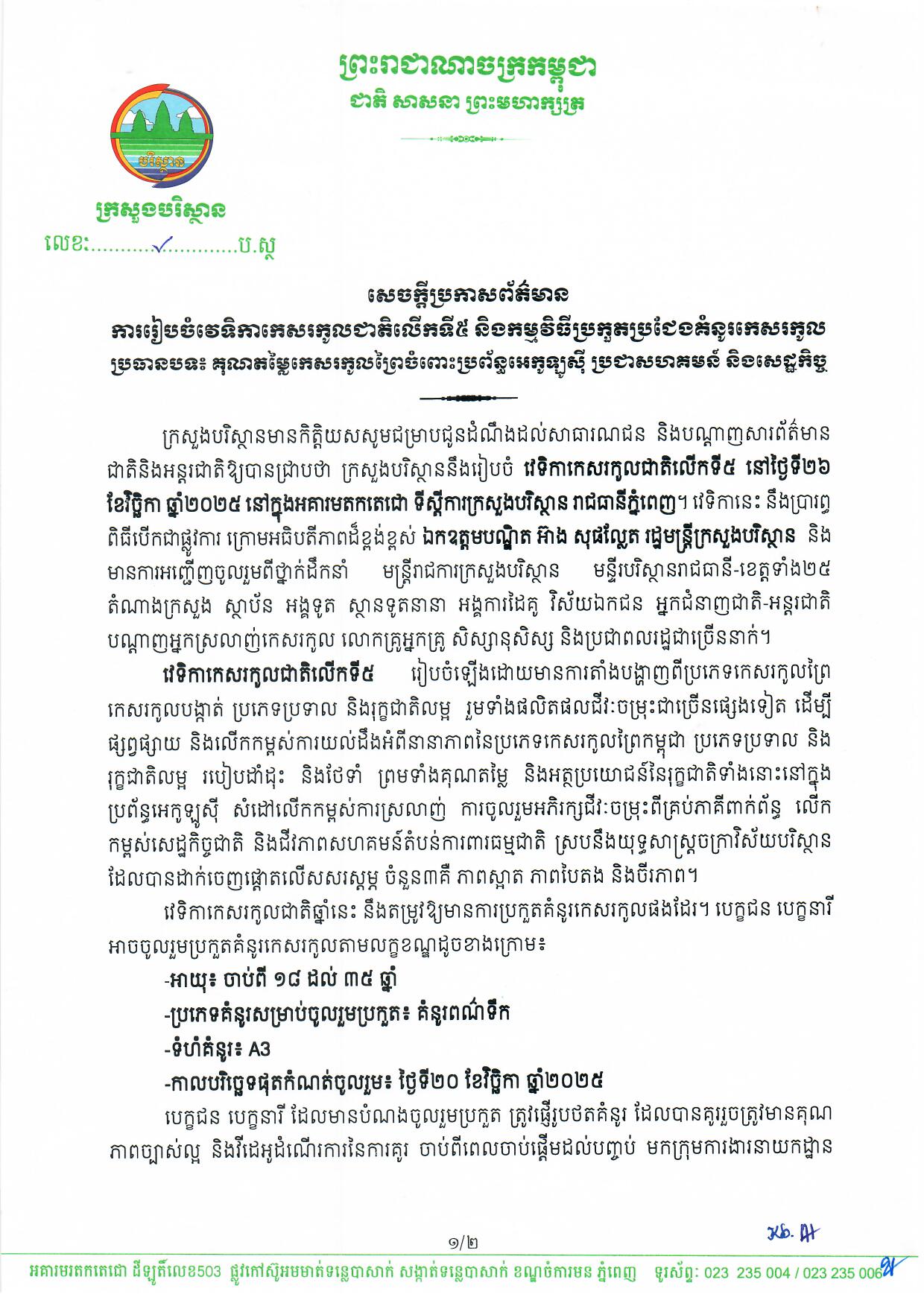 -កាលបរិច្ឆេទផុតកំណត់ចូលរួម៖ ថ្ងៃទី២០ ខែវិច្ឆិកា ឆ្នាំ២០២៥