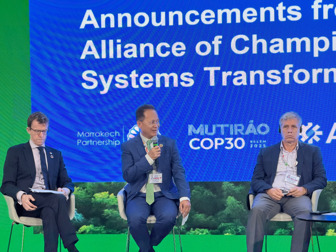 ឯកឧត្តមរដ្ឋមន្រ្តីបានថ្លែងបន្ថែមថា ប្រទេសកម្ពុជាទទួលស្គាល់ថាការផ្លាស់ប្តូរប្រព័ន្ធចំណីអាហារ គឺជាចំណុចកណ្តាលនៃការសម្រេចបាន ទាំងគោលដៅអាកាសធាតុ និងការអភិវឌ្ឍប្រកបដោយចីរភាព។ ជាមួយគ្នានេះ ឯកឧត្តមបានលើកឡើងថា ផែនការរួមចំណែកជាតិលើកទី៣ NDC 3.0 របស់កម្ពុជា បានរួមបញ្ចូលការផ្លាស់ប្តូរប្រព័ន្ធចំណីអាហារ ដែលជាផ្លូវស្នូលសម្រាប់ការកាត់បន្ថយ ការសម្របខ្លួន និងកសាងភាពធន់នឹងអាកាសធាតុ។ កម្ពុជា បានចាត់ទុកអាទិភាពសំខាន់ៗរួមមាន៖ ការលើកកម្ពស់របបអាហារប្រកបដោយចីរភាព និងមានសុខភាពល្អ; ការពង្រីកកសិកម្មឆ្លាតវៃ និងធន់នឹងអាកាសធាតុ; ការជំរុញការស្តារតំបន់ការពារទេសភាព និងវិធីសាស្រ្តផ្អែកលើប្រព័ន្ធអេកូឡូស៊ី; ការកាត់បន្ថយសំណល់ចំណីអាហារ; និងការបញ្ចូលសមភាពយេនឌ័រទៅក្នុងសកម្មភាពទាំងអស់។ លើសពីនេះ អាទិភាពទាំងនេះត្រូវបានចង្អុលបង្ហាញ ក្នុងផែនទីបង្ហាញផ្លូវចំនួនពីរ របស់កម្ពុជា ទី១ ផែនទីបង្ហាញផ្លូវស្តីពីប្រព័ន្ធស្បៀងសម្រាប់ការអភិវឌ្ឍប្រកបដោយចីរភាពនៅកម្ពុជា ២០២៥-២០៣០ និងយុទ្ធសាស្ត្រជាតិលើកទី ៣ សម្រាប់សន្តិសុខស្បៀងអាហារ និងអាហារូបត្ថម្ភឆ្នាំ ២០២៤-២០២៨។